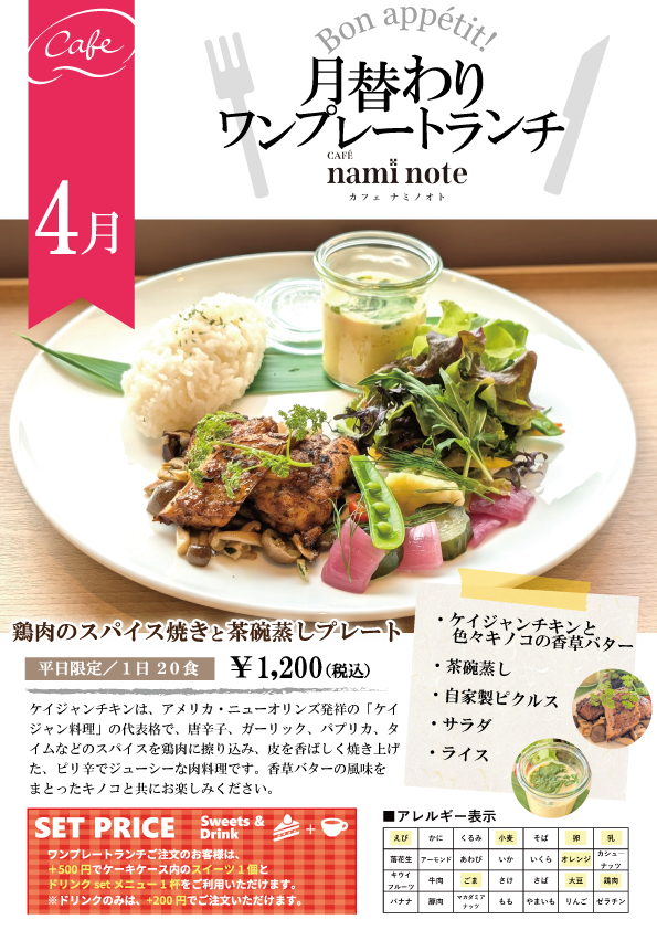 カフェ【nami note】だけのオリジナルテイストをお楽しみください。