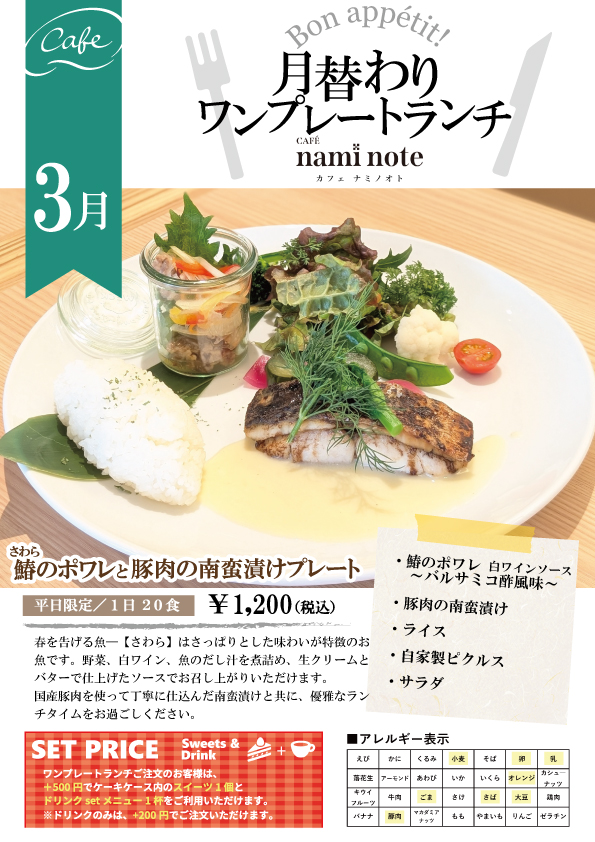 カフェ【nami note】だけのオリジナルテイストをお楽しみください。