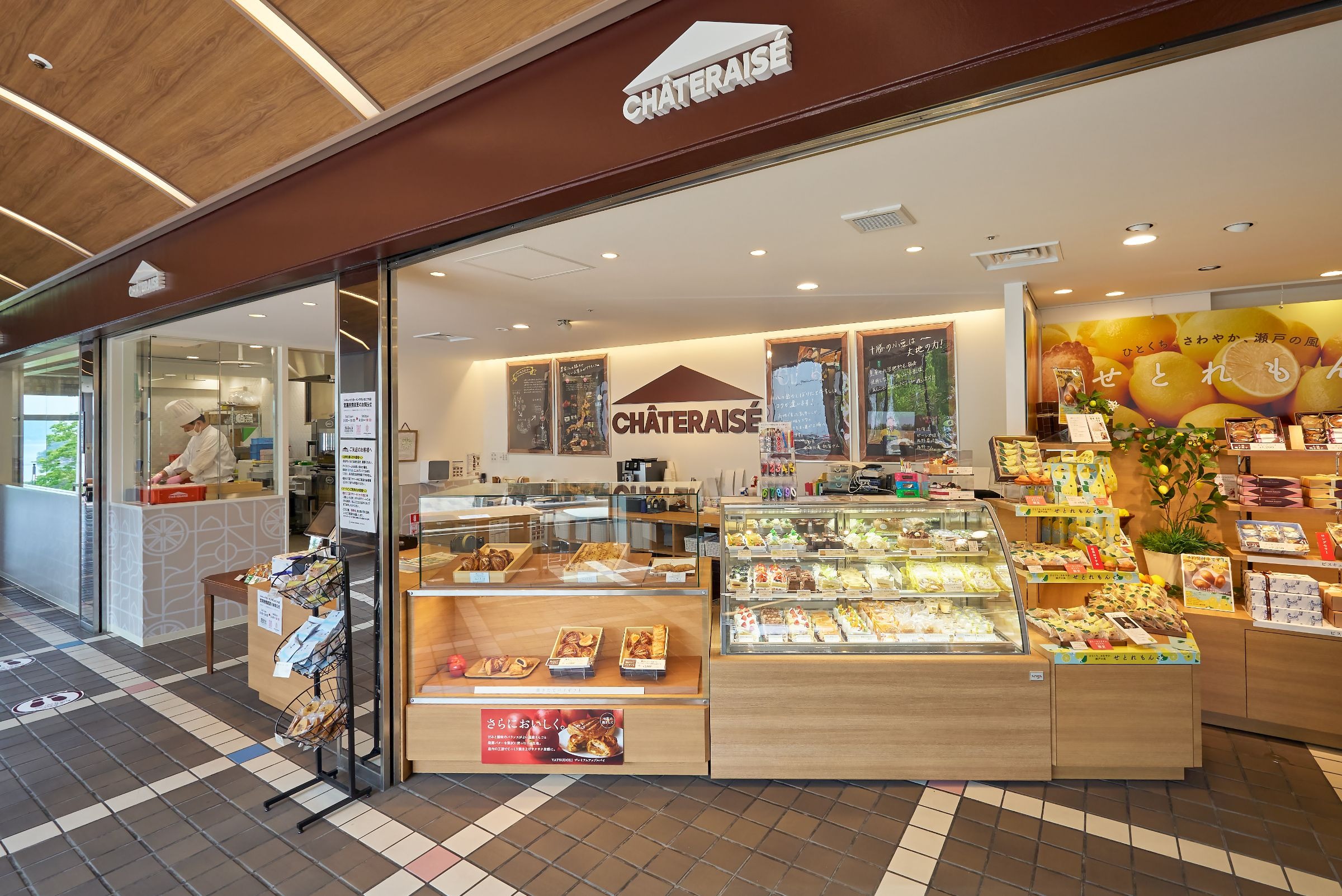 お菓子屋「シャトレーゼ」の定番のスイーツ・アイスクリームはもちろん、焼きたてのアップルパイや「瀬戸内レモンマドレーヌ せとれもん」も取り揃えております。