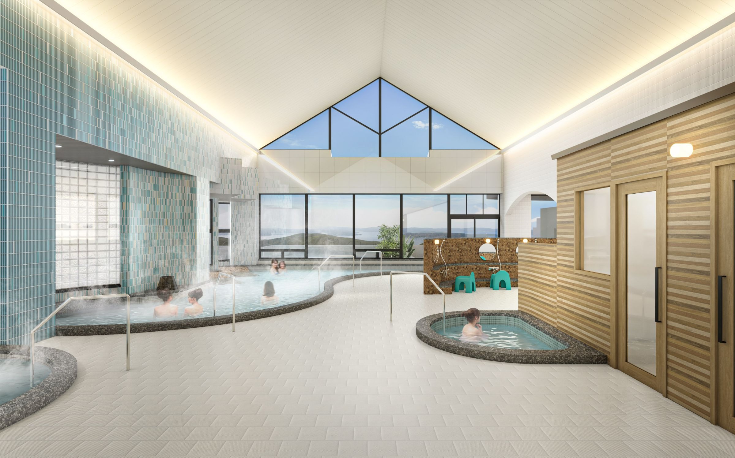 眺望へ繋がるグラデーションタイルが特徴で、多島美が望める露天風呂が1日の疲れを優しく癒します。