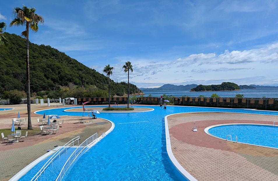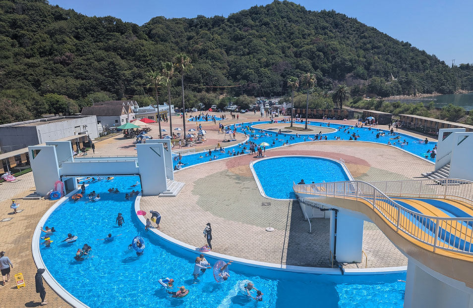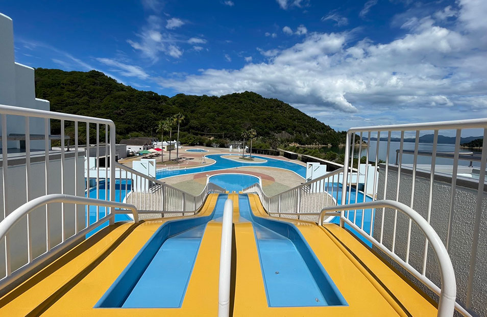 太陽と瀬戸内を背景に、水しぶきをあげて楽しめます。