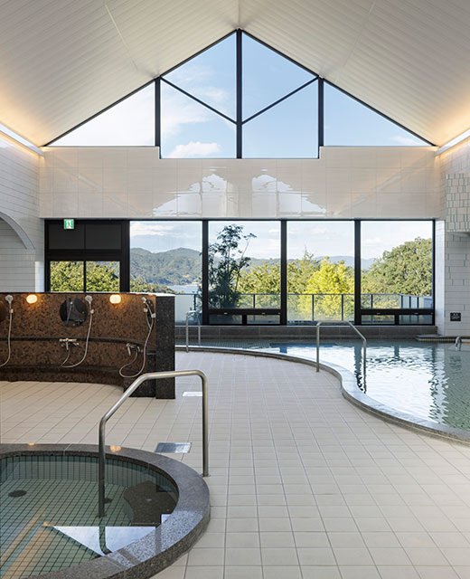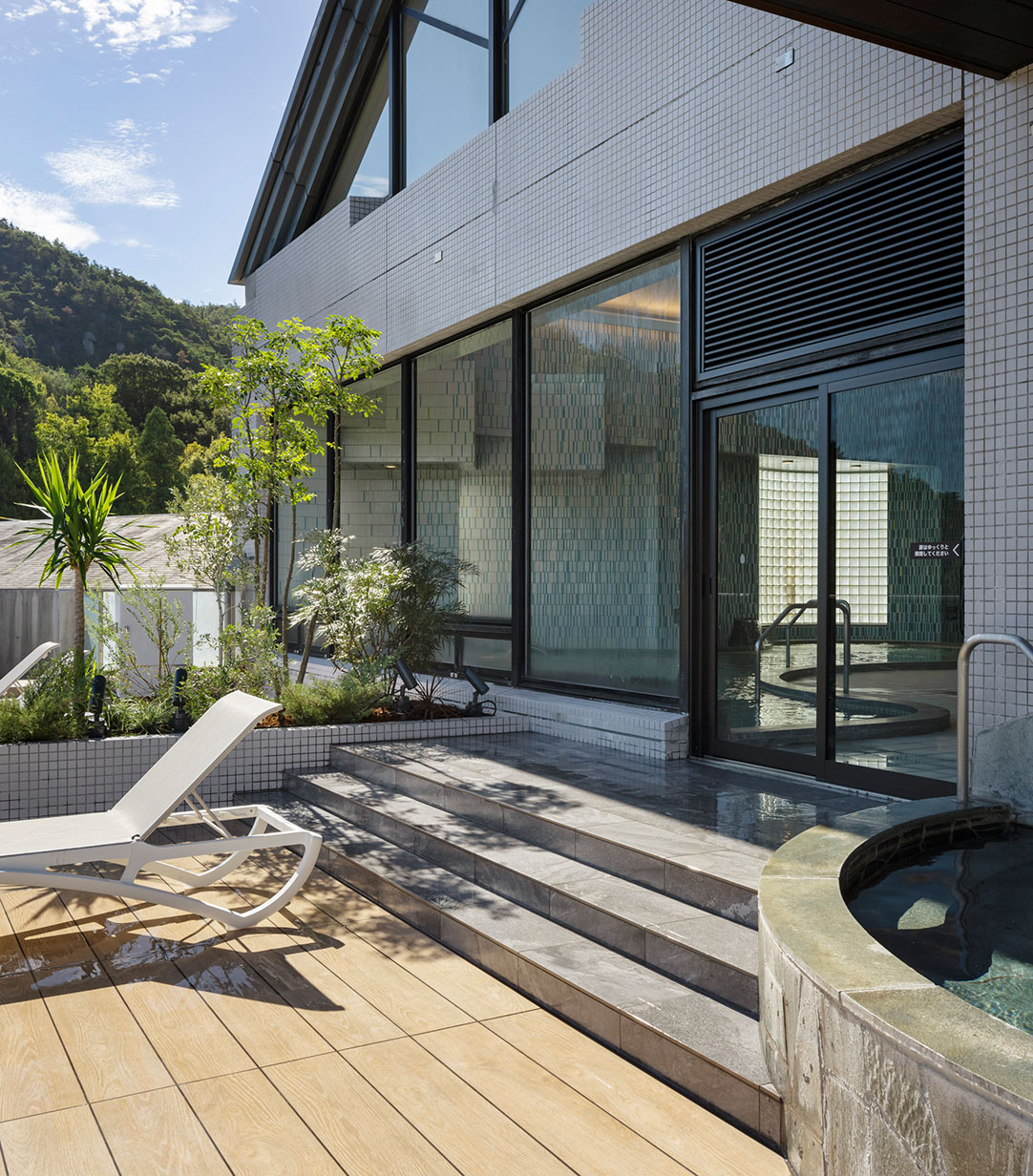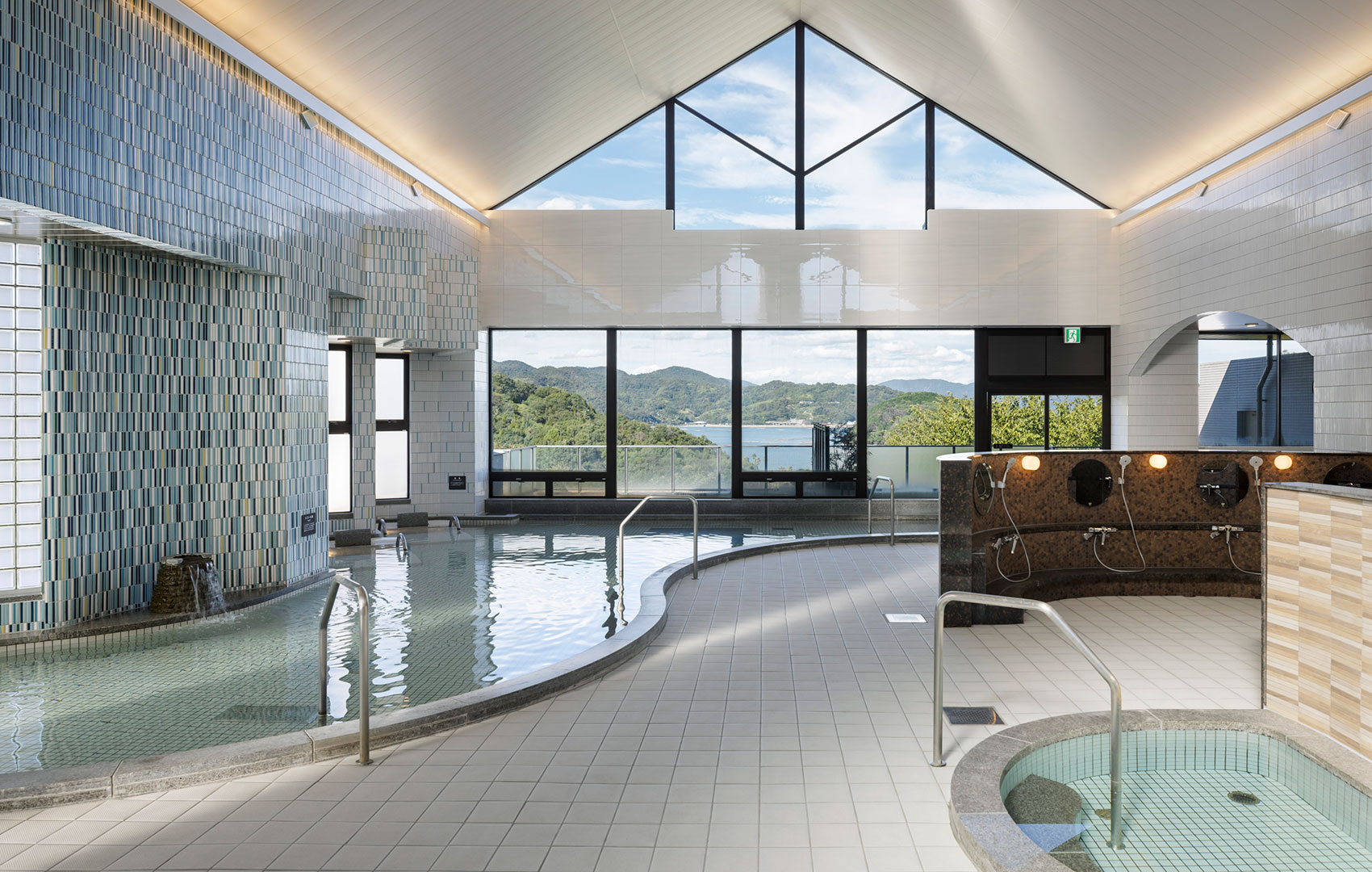 眺望へ繋がるグラデーションタイルが特徴で、多島美が望める露天風呂が、1日の疲れを優しく癒します。